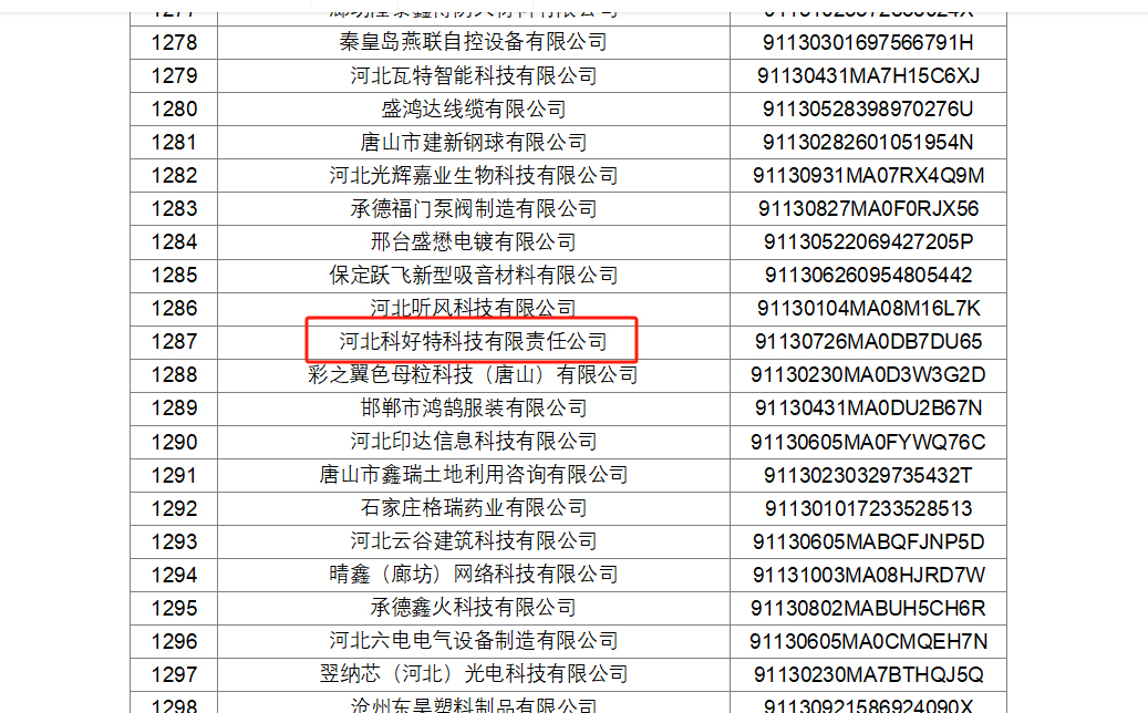 近日,河北省工業(yè)和信息化廳公布了2024年第三批省級(jí)科技型中小企業(yè)名單,科好特科技憑借突出的技術(shù)創(chuàng)新能力,成功斬獲"國(guó)家級(jí)科技型中小企業(yè)"認(rèn)證。這一榮譽(yù)標(biāo)志著公司在專(zhuān)業(yè)化、創(chuàng)新化發(fā)展道路上邁上新臺(tái)階。