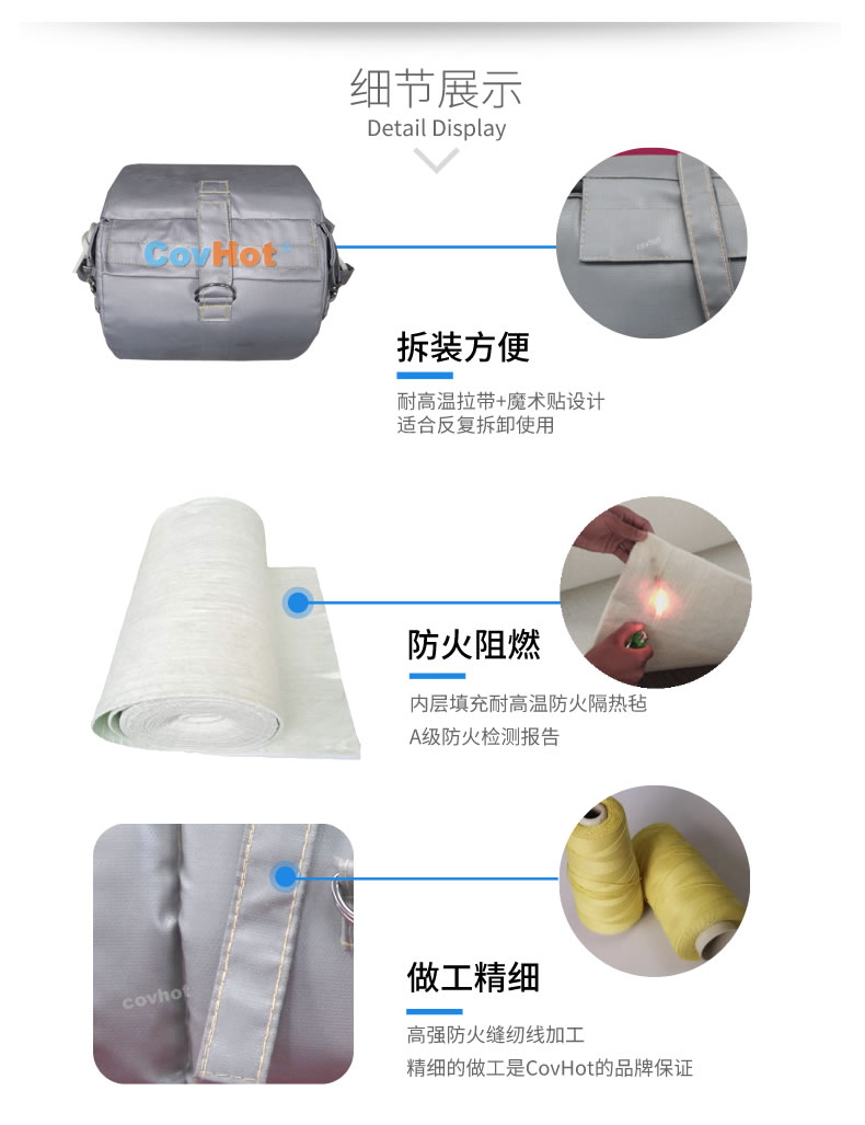 防腐蝕可拆卸法蘭閥門保溫套,保溫絕熱性能優(yōu)良,能耐高低溫,尤其適用于不同工業(yè)設(shè)備、閥門、管道等的保溫隔熱需求。
