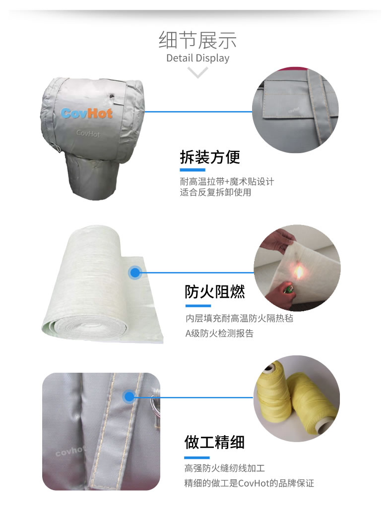 可拆卸保溫衣安裝施工方便快捷,施工周期短,可大大節(jié)約大修時(shí)間,從而提高設(shè)備利用率,給企業(yè)帶來(lái)更好的經(jīng)濟(jì)效益;