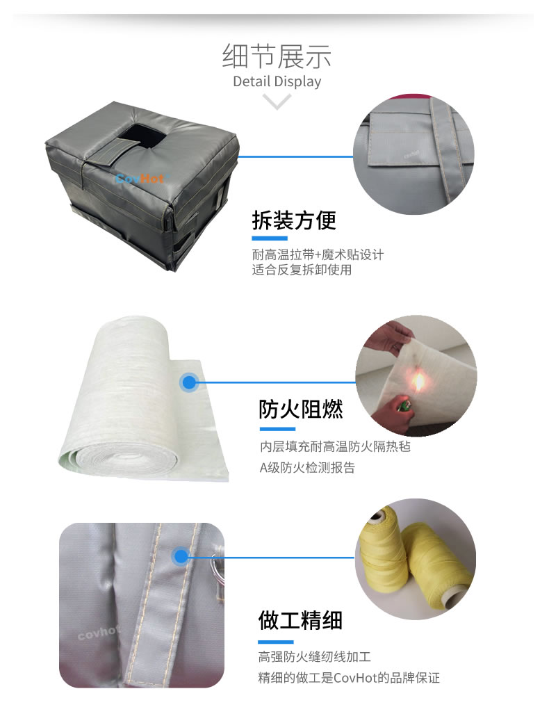 執(zhí)行器防凍保溫套由內(nèi)隔熱包裹層、中間隔熱保溫層、外隔熱防護(hù)層以及電伴熱系統(tǒng)組成,根據(jù)各種型號(hào)的執(zhí)行器工作環(huán)境、外形尺寸等量身定制而成。